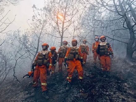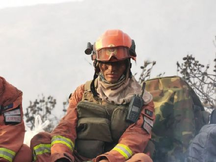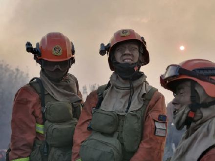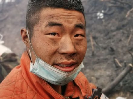 森林消防員們用被煙塵熏過的眼睛,看向被“火魔”席卷過后的跡地;他們坐在還有余熱的跡地上累到睡著;